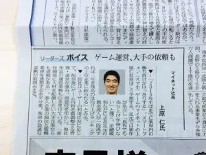 2014年10月8日発行の日経MJ「リーダーズ ボイス」欄において、弊社代表の上原が紹介されました。