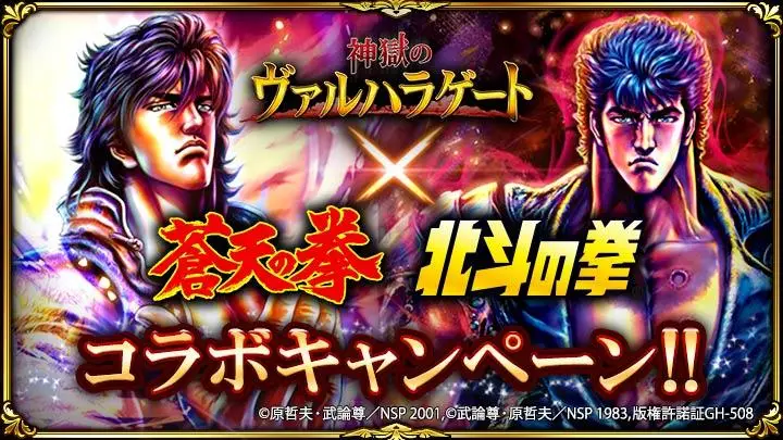 「神獄のヴァルハラゲート」と 「蒼天の拳」「北斗の拳」が初のコラボレーション! ~コラボ期間中にログインするだけで限定ガチャ券や、アイテムがもらえる~